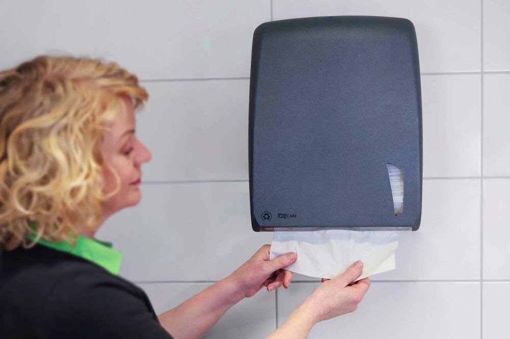 Het merk CaluCare omvat nu alles voor sanitaire ruimtes. Van stijlvolle, moderne dispensers tot hygiënepapier en handzepen. Organisaties zitten bij de aanschaf van de dispensers niet vast aan een abonnement en hebben vrije keuze in papier en zeep. Toch adviseert Carel Lurvink om CaluCare hygiënepapier en handzeep aan te schaffen.