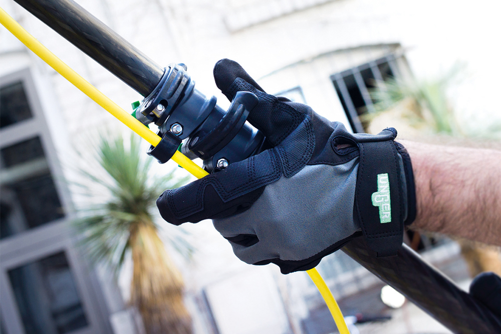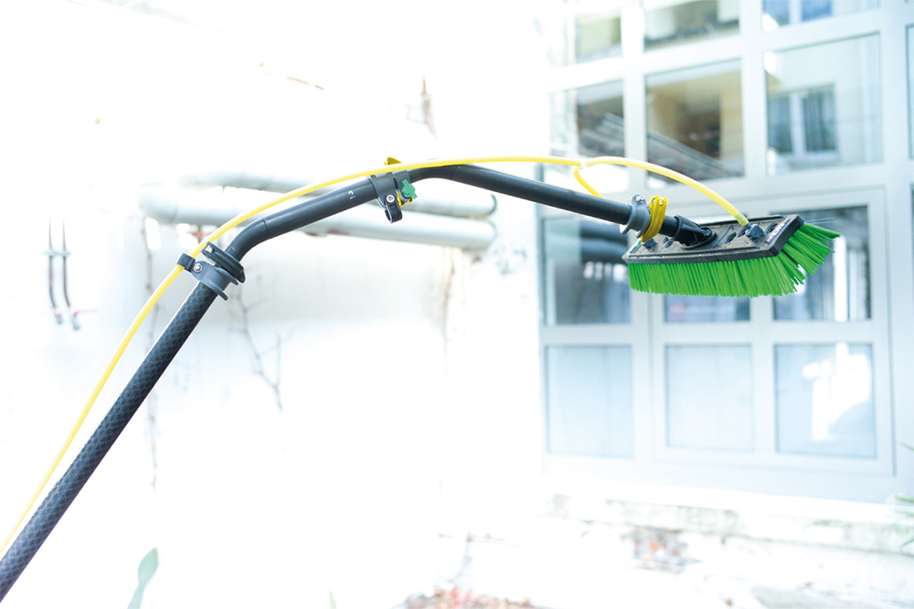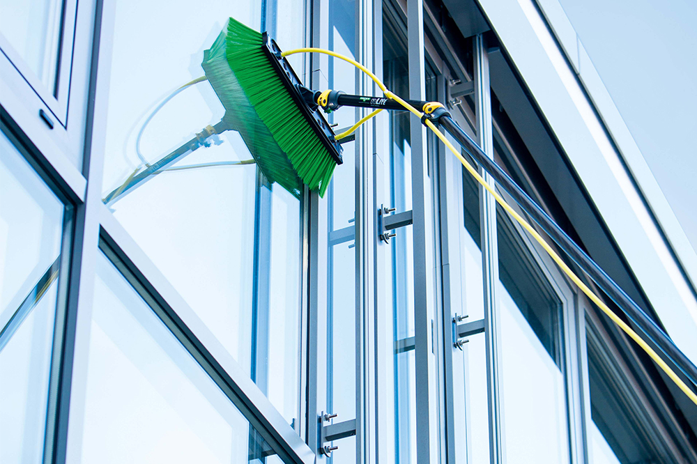 Elk onderdeel van het systeem is speciaal ontwikkeld voor de schoonmaakprofessional. De klemmen waarmee de paalhoogte wordt geregeld of de verlengstukken worden bevestigd, zijn gemakkelijk te bedienen. Moeizame handelingen met speciaal gereedschap behoren tot het verleden. De juiste afstelling van de spanning is net zo eenvoudig. De hoekadapter is gemaakt van carbon en draagt dus bij tot gewichtsvermindering. Zelfs de borstels zijn lichter – maar dat betekent niet dat er op functies en functionaliteit is beknibbeld. Er zijn talrijke penselen om uit te kiezen.