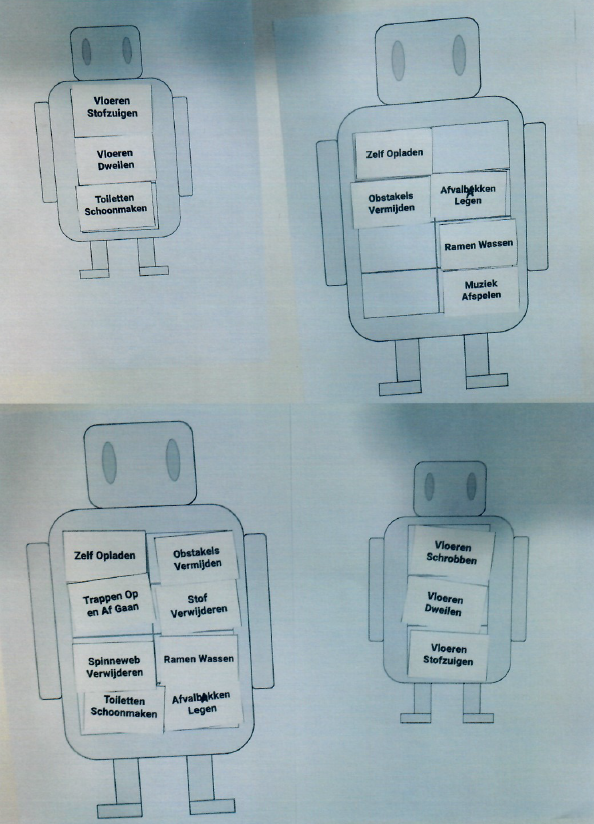 Via diverse afbeeldingen en beschrijvingen gaan de onderzoekers wat nader in op de rol van de robot als zijnde de assistent van de schoonmaker en/of als tool en doen zij verslag van de resultaten van de diverse gehouden workshops aangaande het thema robotisering. Waar dient de robot aan te voldoen?