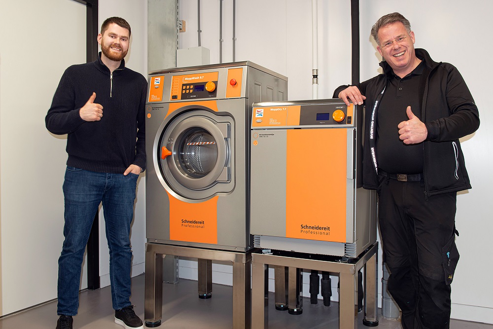 Cursisten en schoonmaakpersoneel doen met behulp van de wasmachine en condensdroger van Schneidereit Professional basiskennis over het gebruik van industriële was- en droogapparatuur op. Een hygiënisch schoonmaakresultaat kan namelijk alleen worden bereikt door het gebruik van grondig gereinigde dweilen, moppen en schoonmaakdoeken. Met de apparatuur van Schneidereit Professional is 100% hygiëne gegarandeerd.