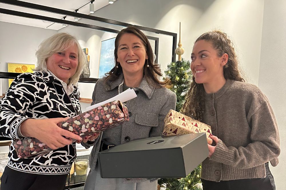 Bestuurslid Rolien van Groeningen (links) kijkt toe hoe haar collega Laetitia Simonis debatorganisator Bart Bakker interviewt. Namens SIEV organiseren zij het debat.